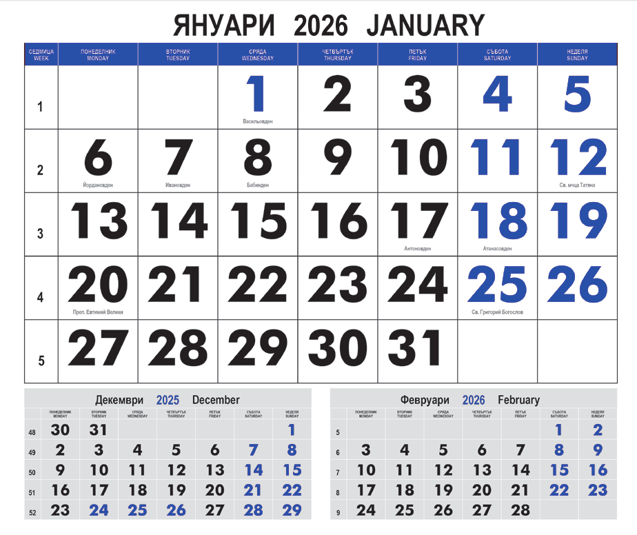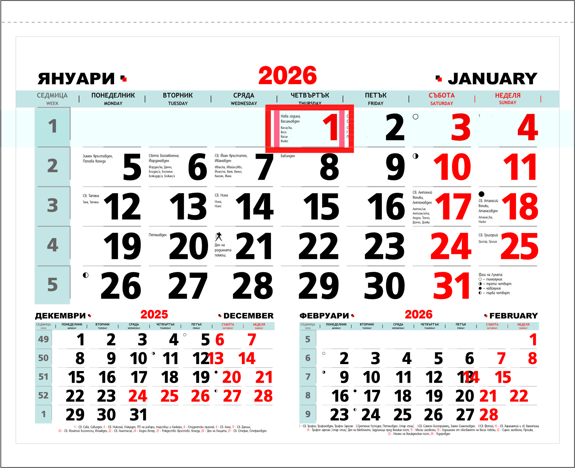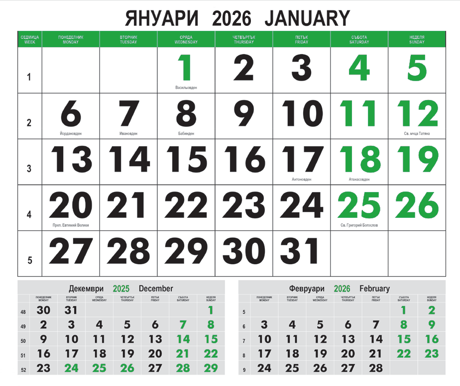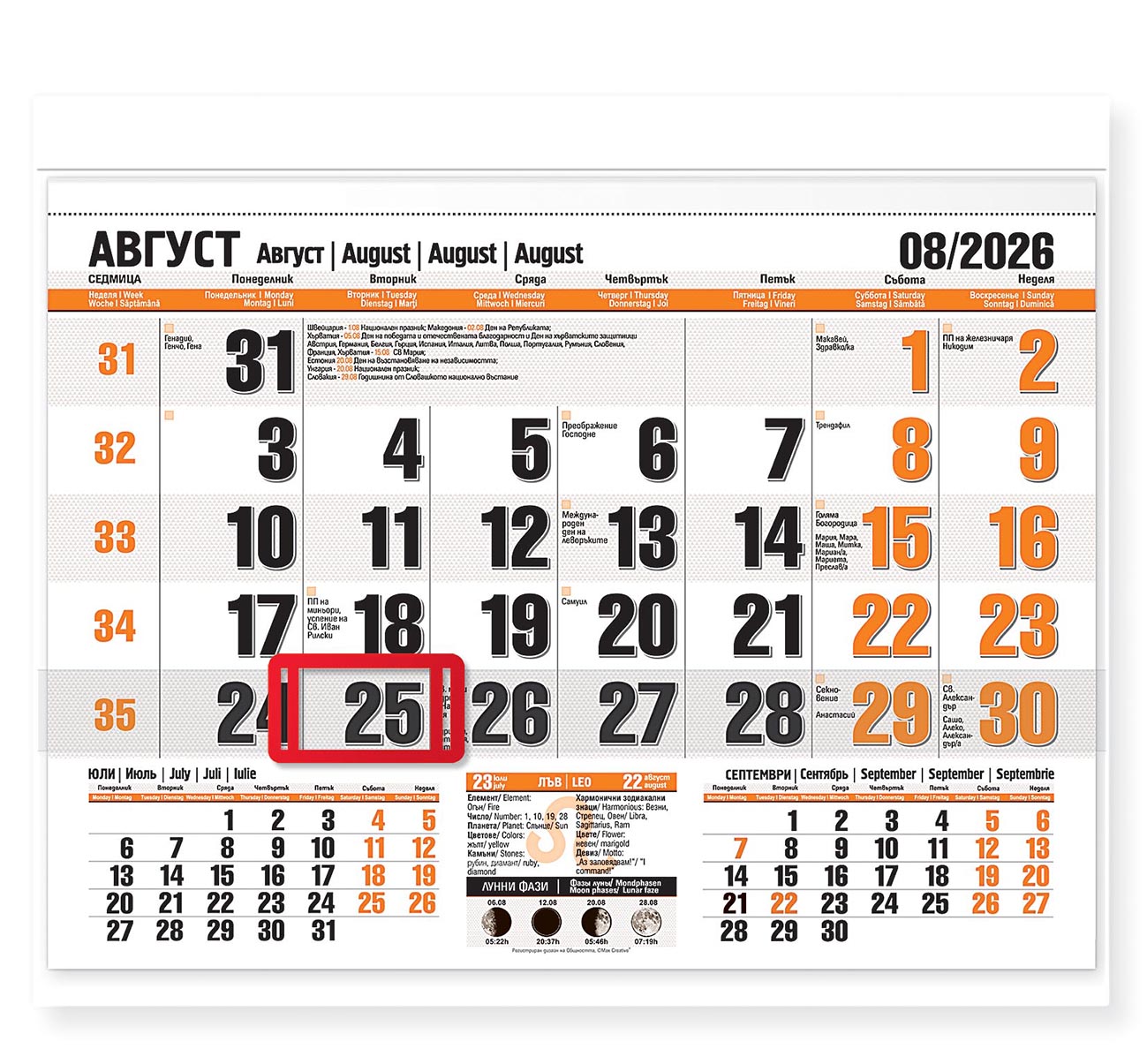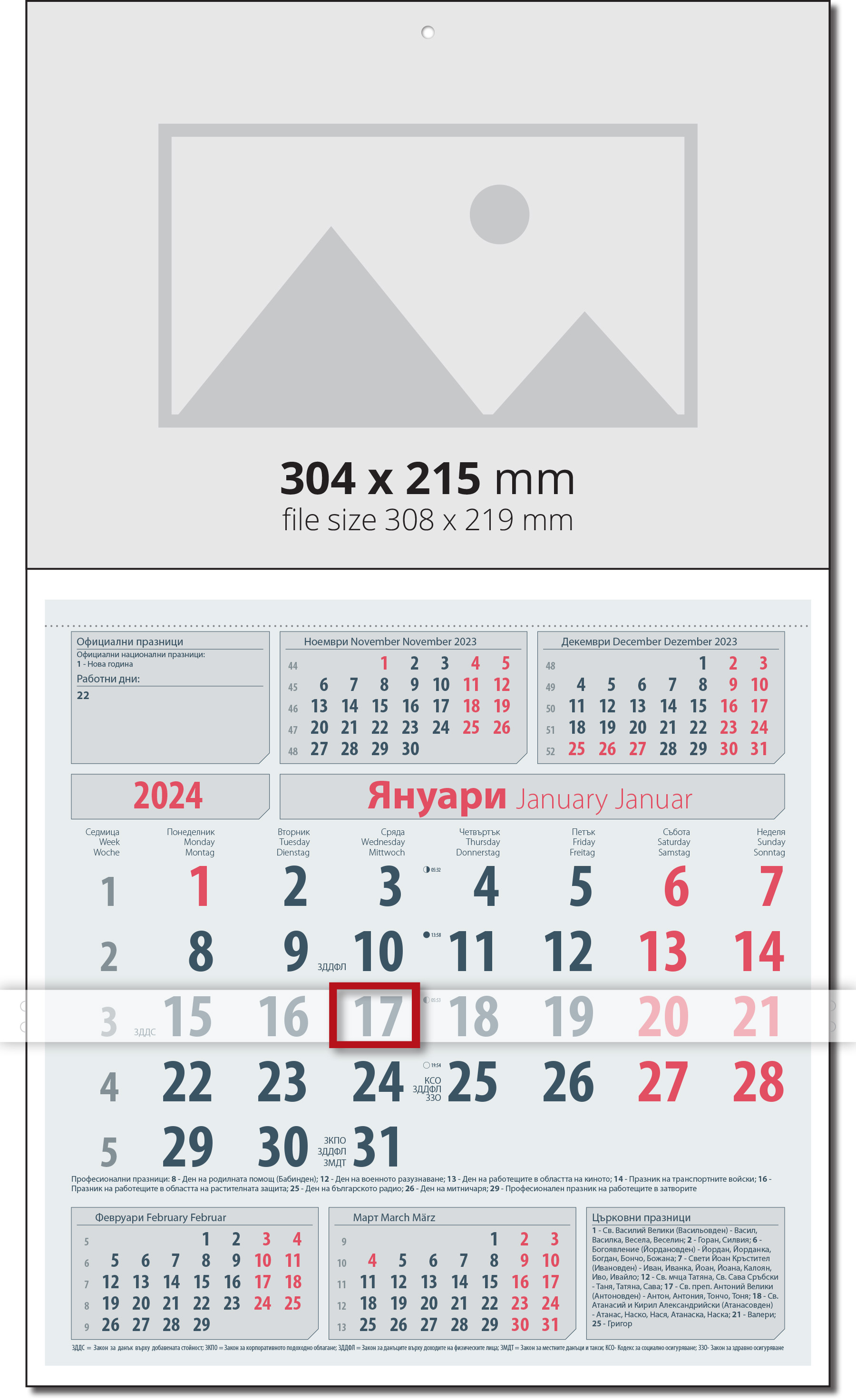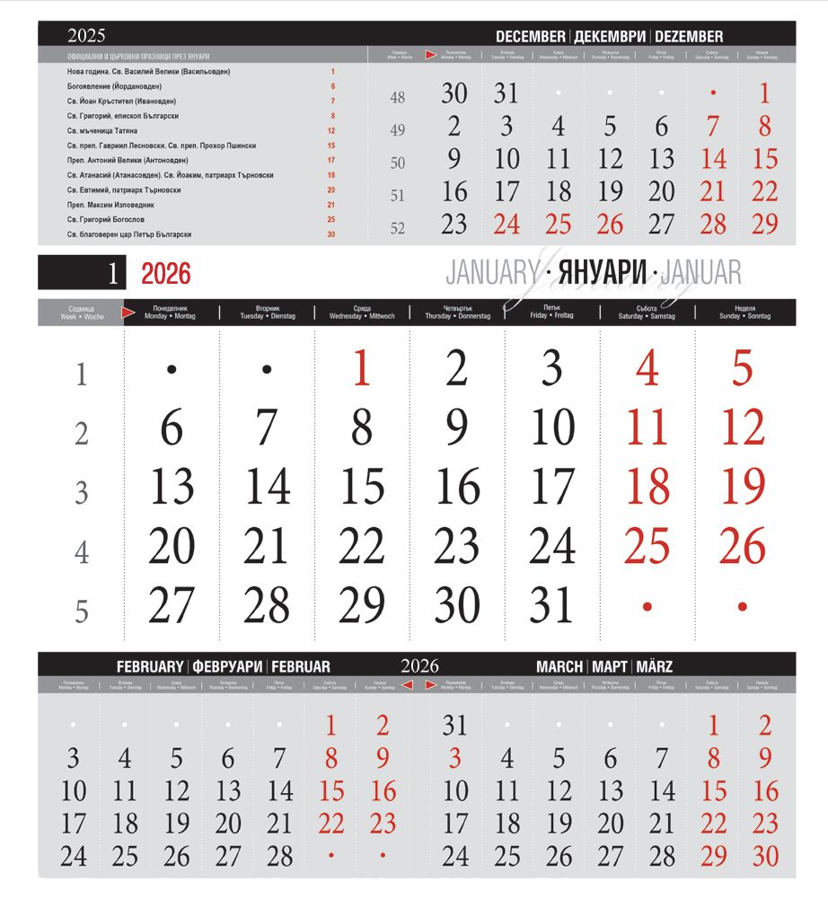 РАБОТНИ КАЛЕНДАРИ ЕДНО ТЯЛО
