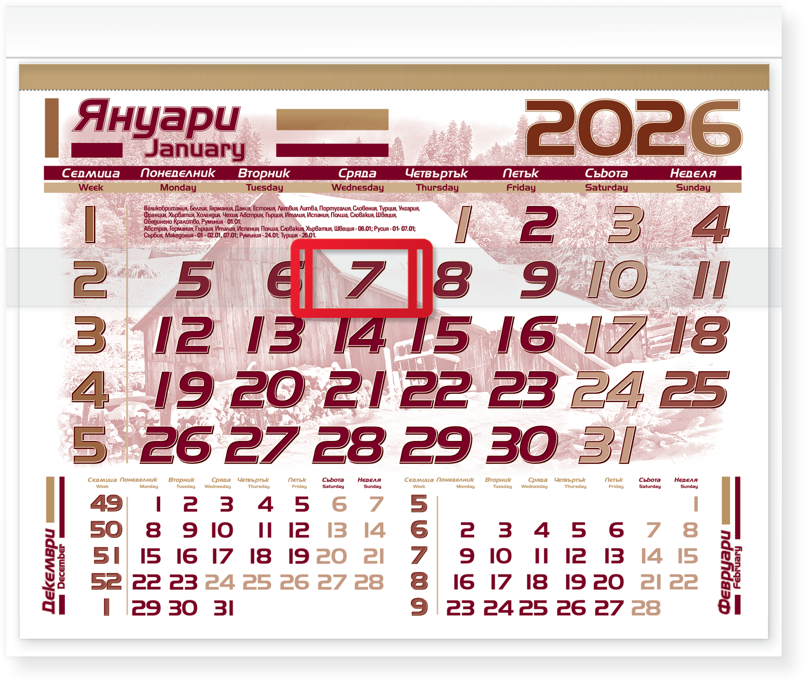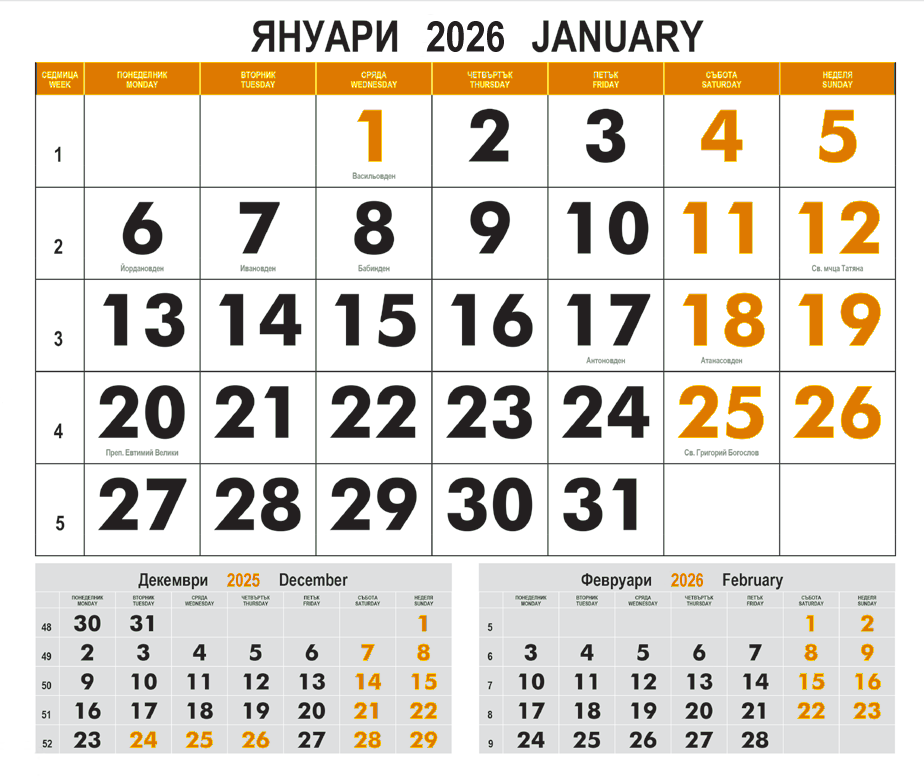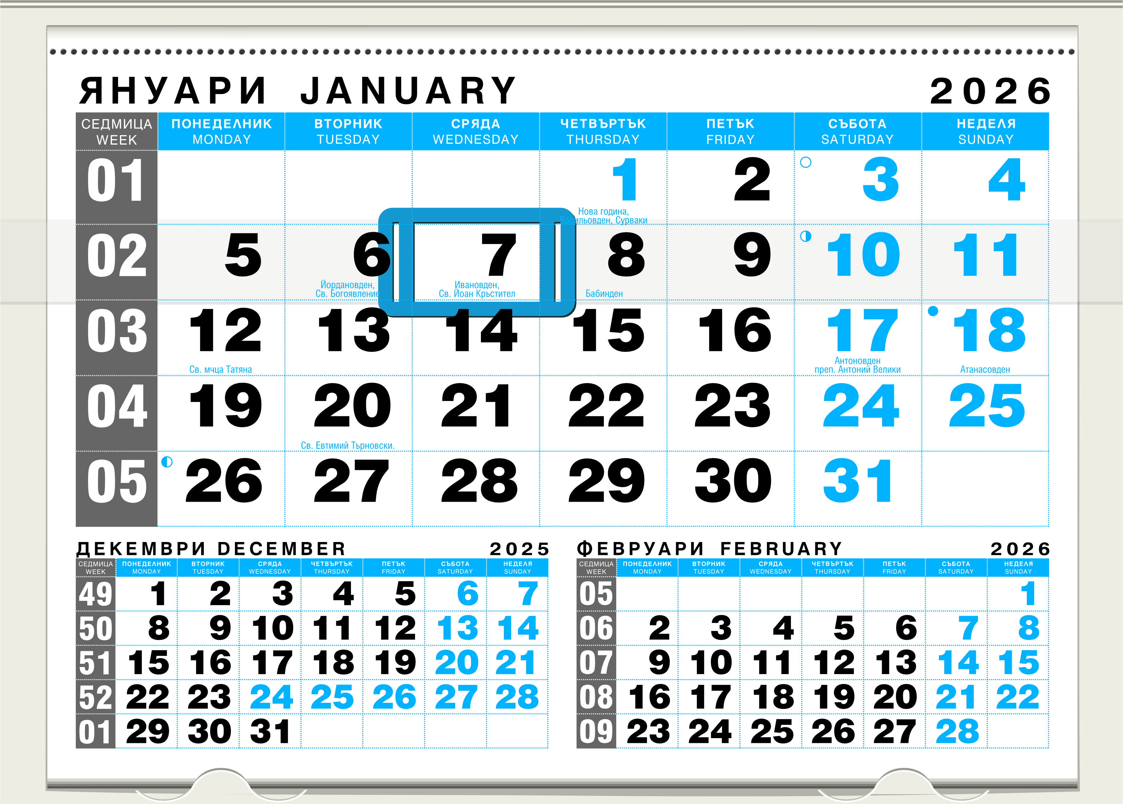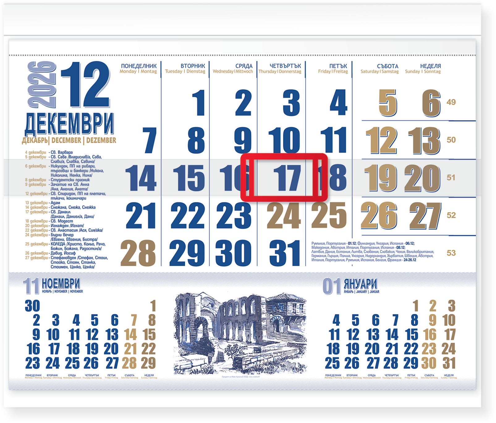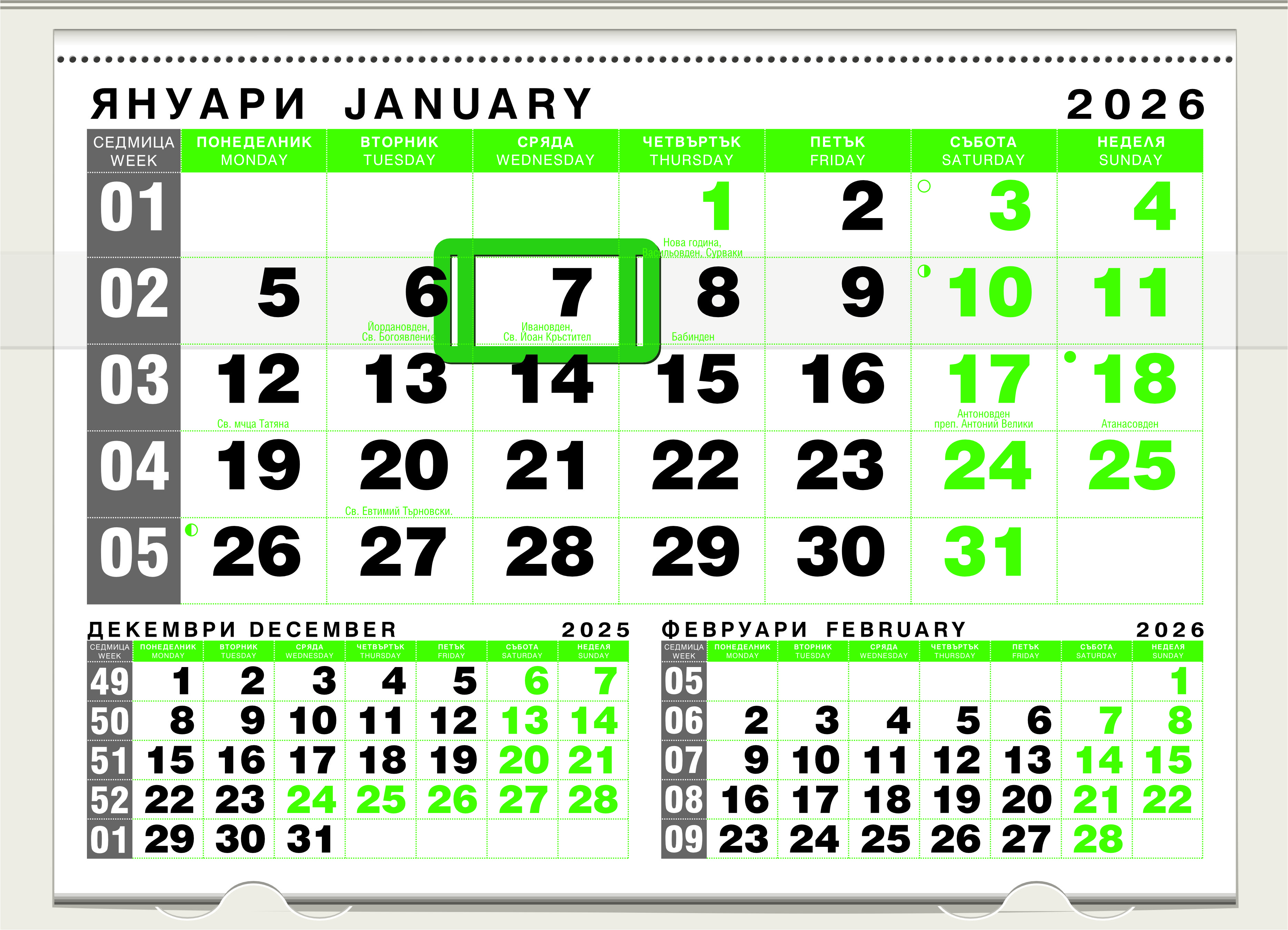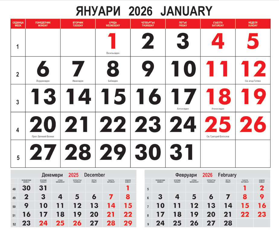 РАБОТНИ КАЛЕНДАРИ ЕДНО ТЯЛО