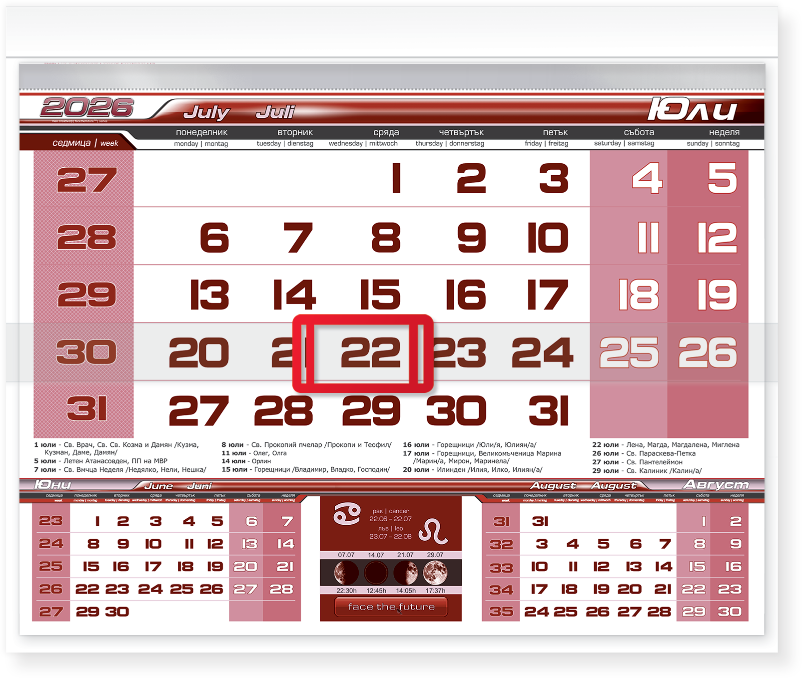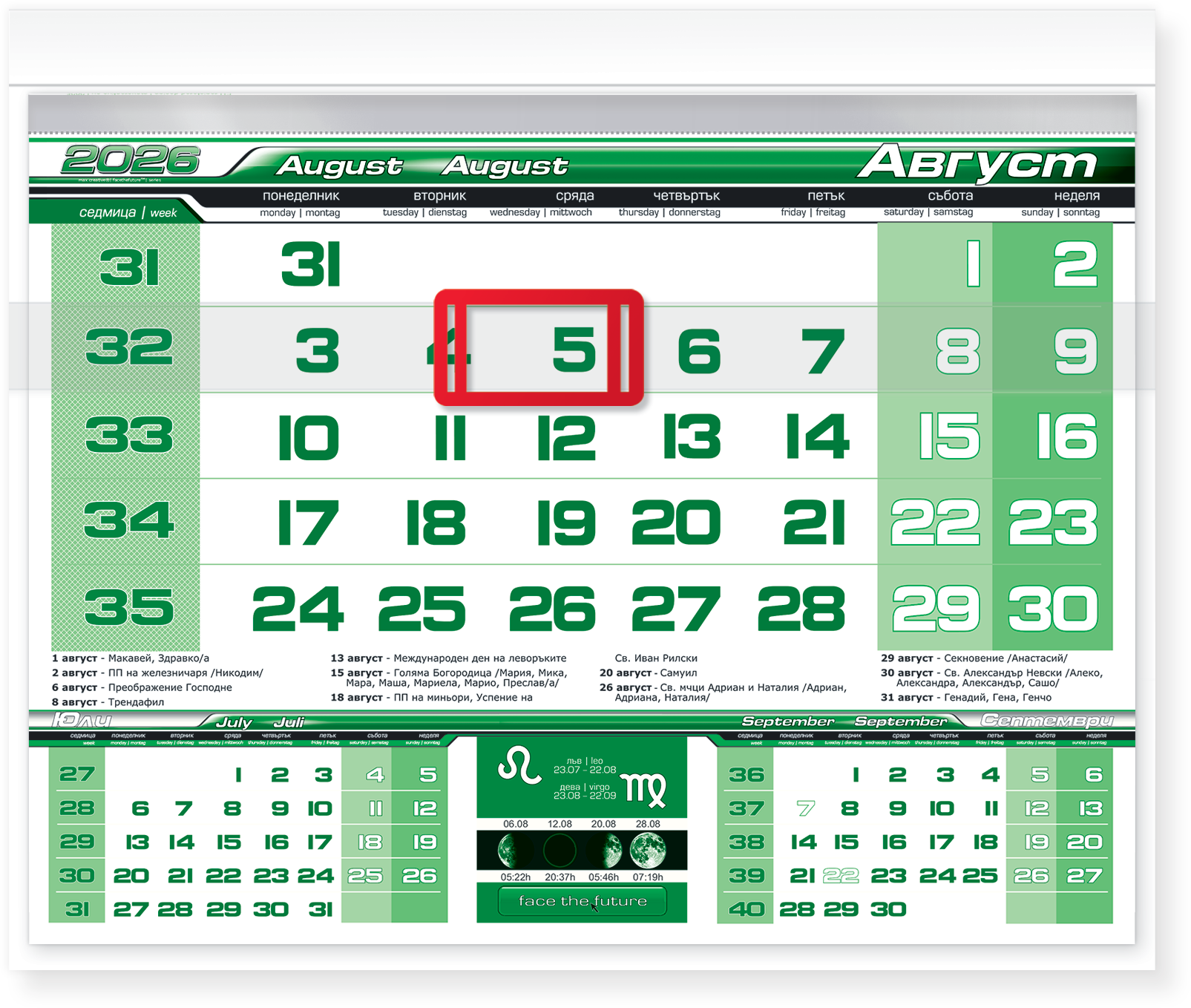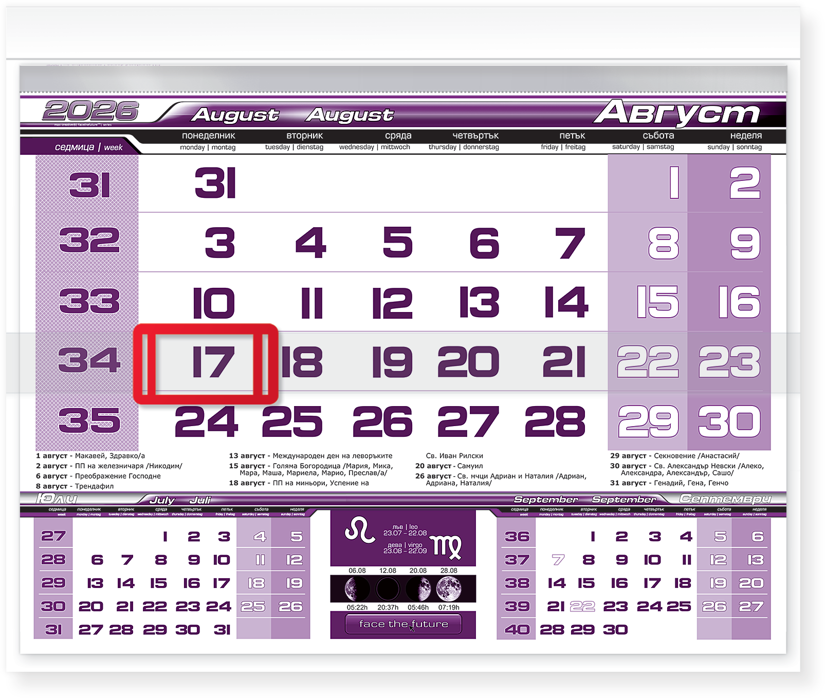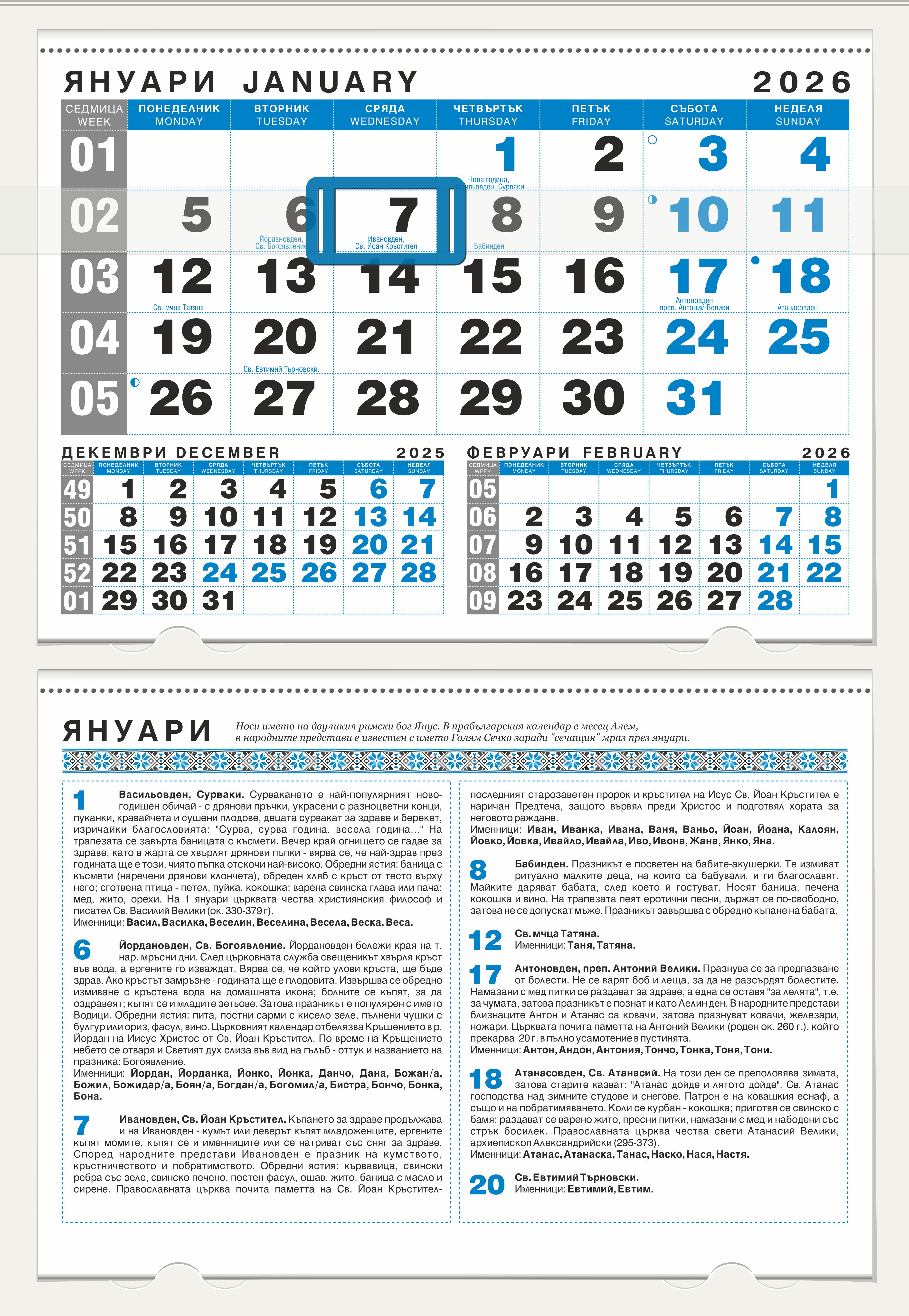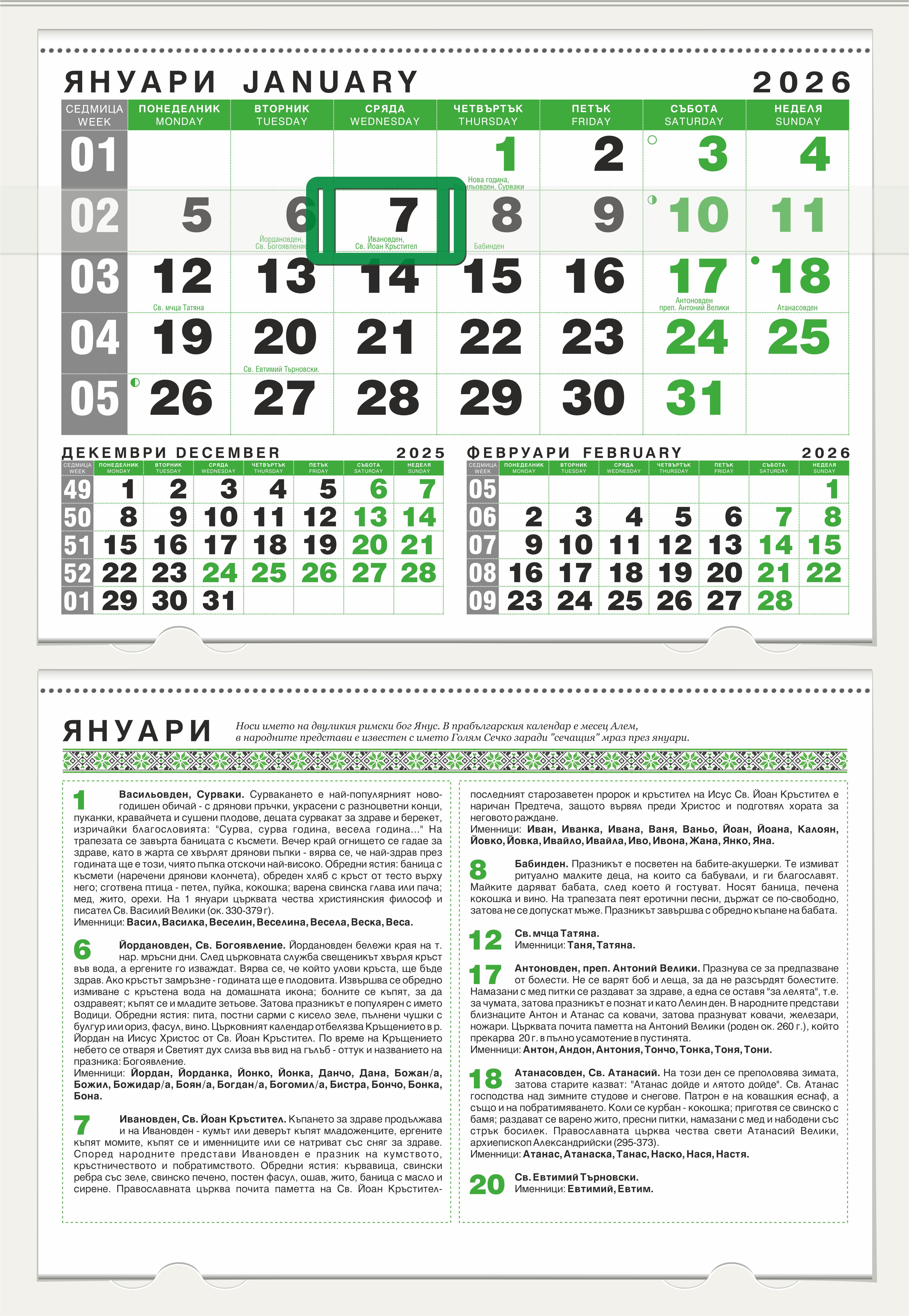 РАБОТНИ КАЛЕНДАРИ ЕДНО ТЯЛО