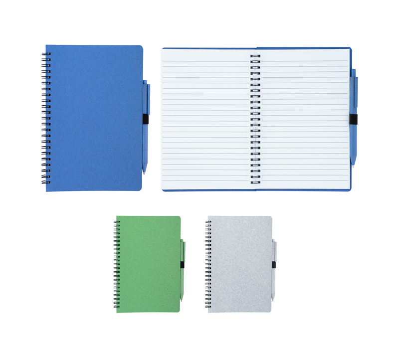 Тефтер A5 с еко химикалка, 70 листа с редове, цвят на хартията бял, мека корица. Материал: трици, PVC, хартия. Размер: 140х210х9 mm. Печатаемо поле: 70х30 mm. Печат: тампонен, ситопечат.
