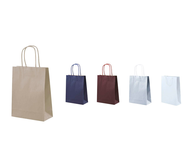Хартиена торба, текстилни дръжки. Материал: хартия. Размер на артикула: 190х240х80 mm. Печатаемо поле: 80х70 mm. Печат: ситопечат. При поръчка, количеството да е кратно на 12 бр.