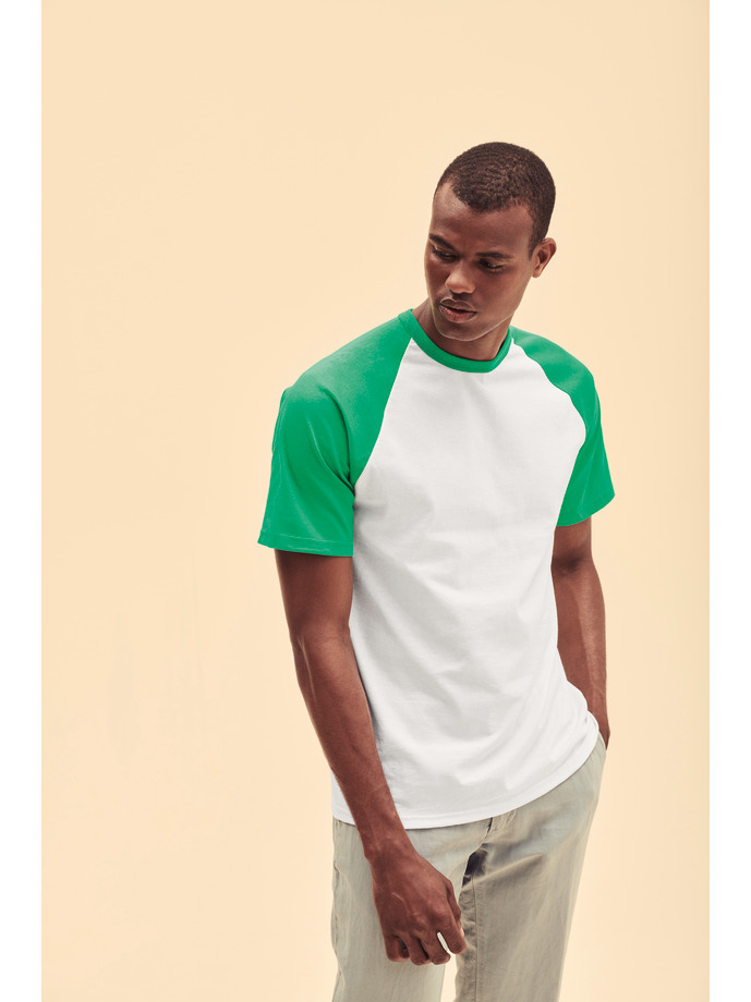 Двуцветна тениска с къс ръкав. Контрастни цветове между тялото и деколтето и ръкава.