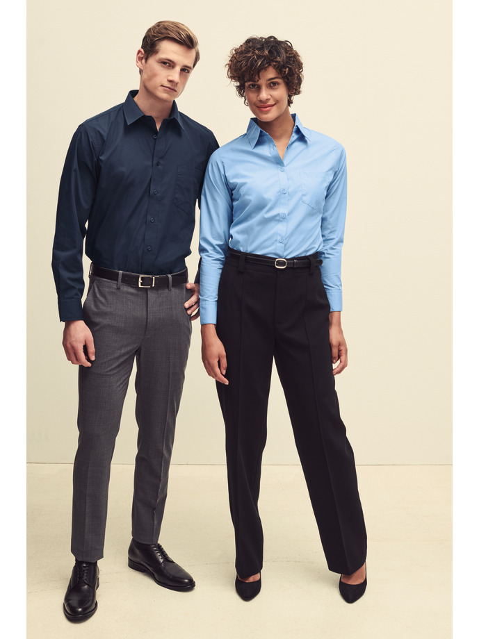 Елегантна официална мъжка риза Poplin, с дълъг ръкав и джоб. Копчета в същия цвят. Удобна както за бизнес така и за работно облекло.