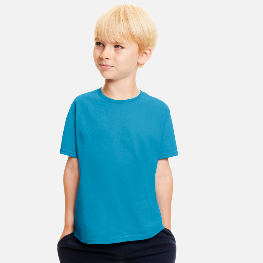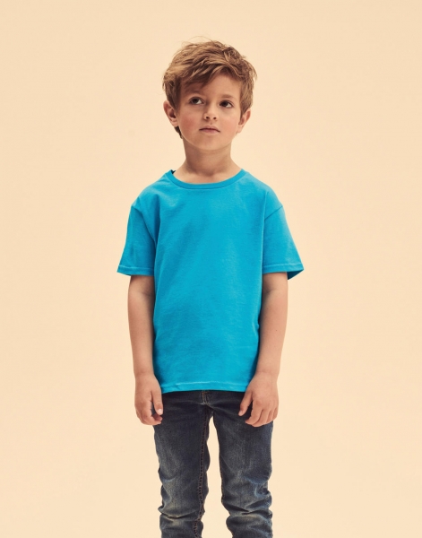 Hов модел детска тениска, к Леко вталена, елегантна с обло тънко деколте и къси ръкави. Свободната кройка ви осигурява свобода на движение, а материята - 100% combed ringspun cotton мекота и лекота при носене. Новост за Fruit of the loom е лесния за отстраняване етикет, което прави тениската лесна за Rebranding.