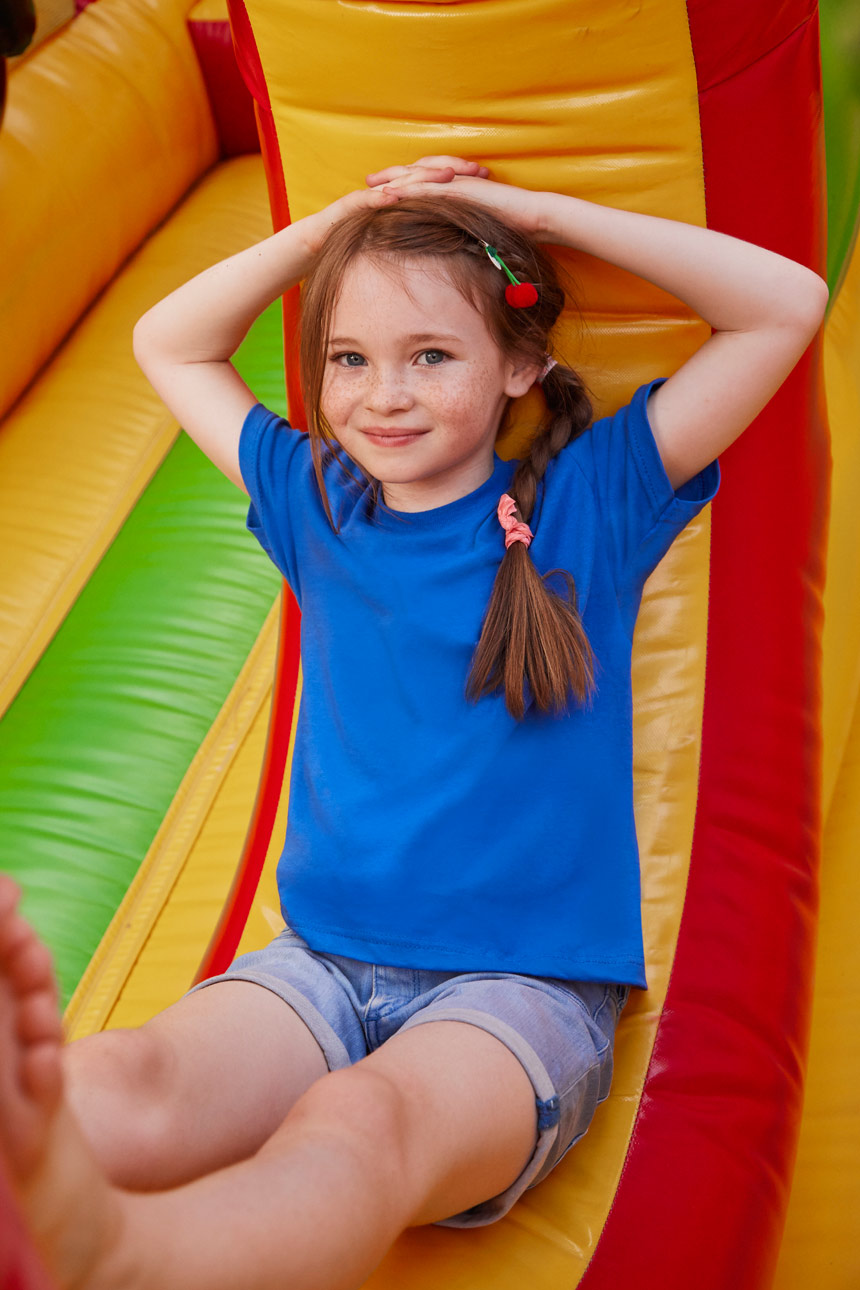 Детска олекотена тениска за промоции, рекламни кампании и други. Лека, удобна, безшевна с деколте с двойна оплетка и трико отговарящо на стандарта Belcoro® за по - чист, по - гладък и стабилен печат