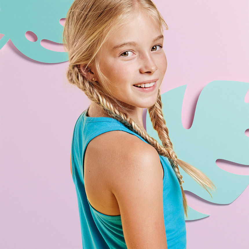 Втален детски потник с широки презрамки и изрязан гръб тип пеперуда.