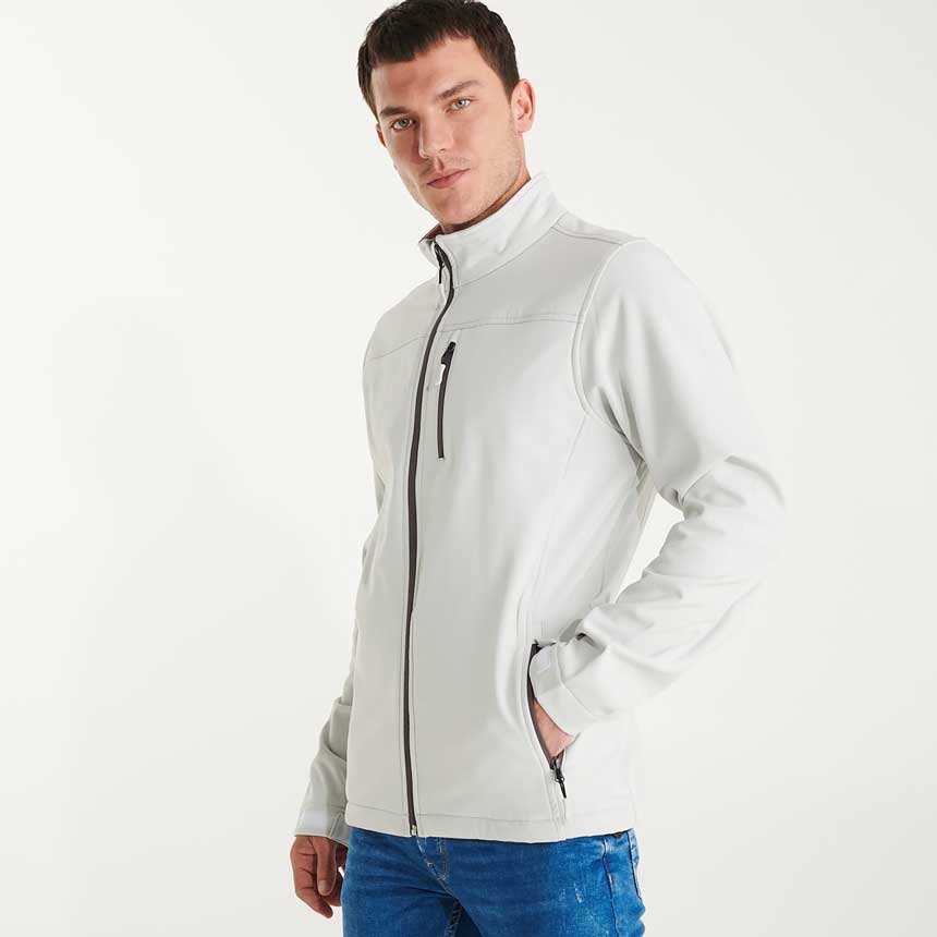 Мъжко вталено яке от специален "SoftShell" материал, състоящ се от два слоя. Якето е с цял цип, който завършва с протектор на брадата. Подсилени парчета на гърдите. Три джоба със специални водоустойчиви ципове. Ръкавите завършват с регулируем маншет от каучук в цвета на якето. Долният край на якето има регулируем ластик с два регулатора. Якето е с висока водо и ветроустойчивост.