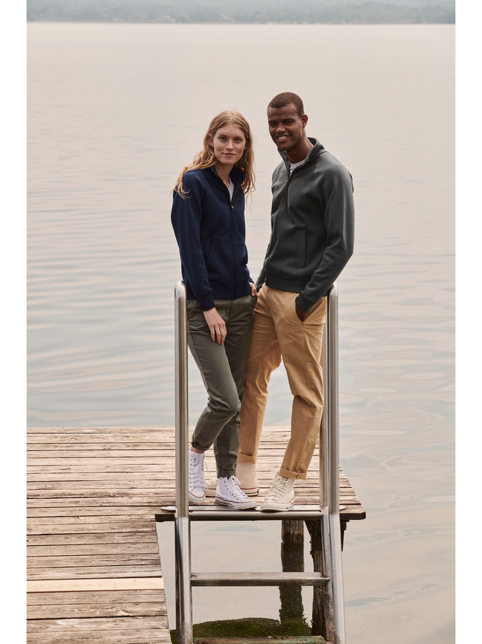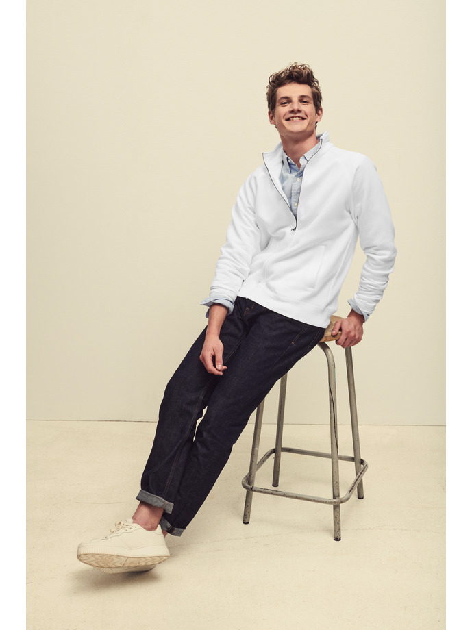 Ежедневна и елегантна блуза с два предни джоба, висока яка и цял метален цип. С ластик на талията и ръкавите. Тя е произведена e от най - меката и пухкава вата PREMIUM. Благодарение на 30% полиестър в нея, не се степва, не става на топчета, не избелява и има прятно и меко усещане. Подходяща за спорт, тренировка, работно облекло и разходка в свободното време.