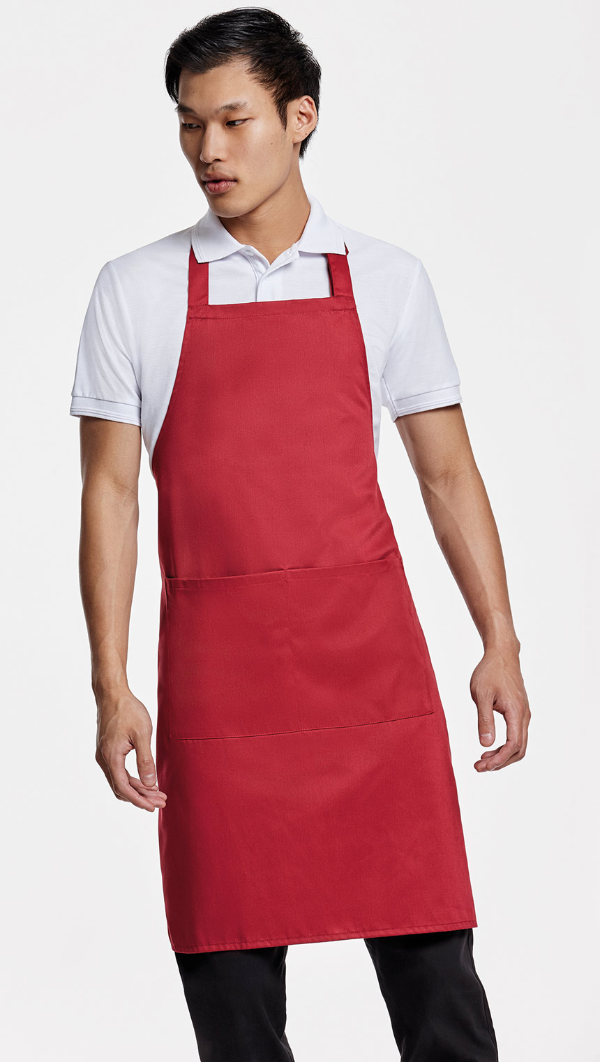 Шефска дълга престилка с регулатор за регулиране на височина, колан за регулиране на ширината и два странични джоба.