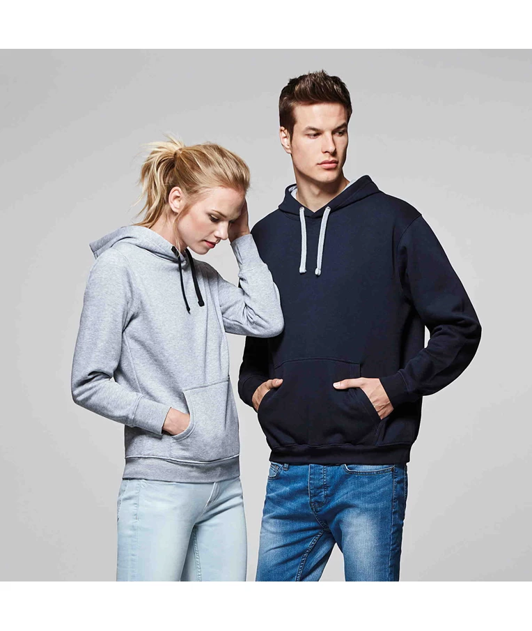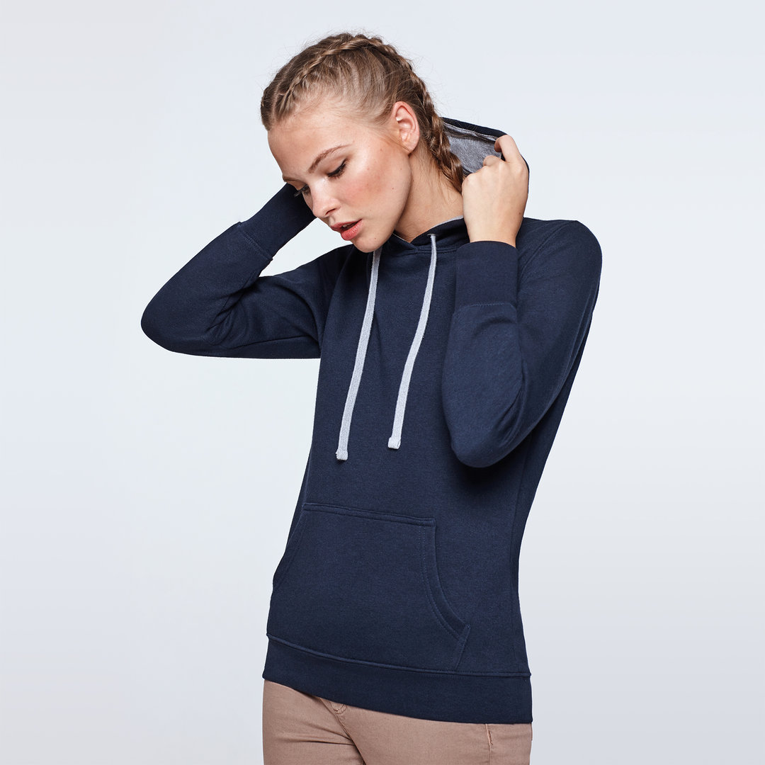 Двуцветен дамски суитчър с джоб тип "кенгуру" и двойна качулка с контрастна подплата и връзка. Суитчъра има ластик на кръста и ръкавите. Много добра комбинация на памук и полиестер.Подходящ както за спорт така и за ежедневието. Със суичъра Urban Woman ще ви е удобно, без да губите стила си
