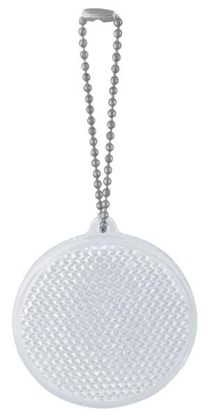 Светлоотразителен ключодържател. Материал: рефлекторна пластмаса. Размер: Ø48х7 mm. Печатаемо поле: 30х9 mm. Печат: тампонен, ситопечат.