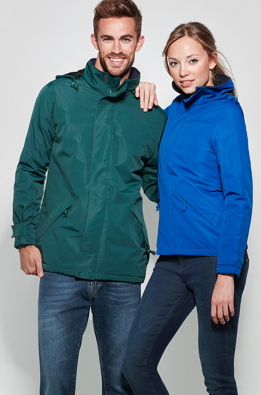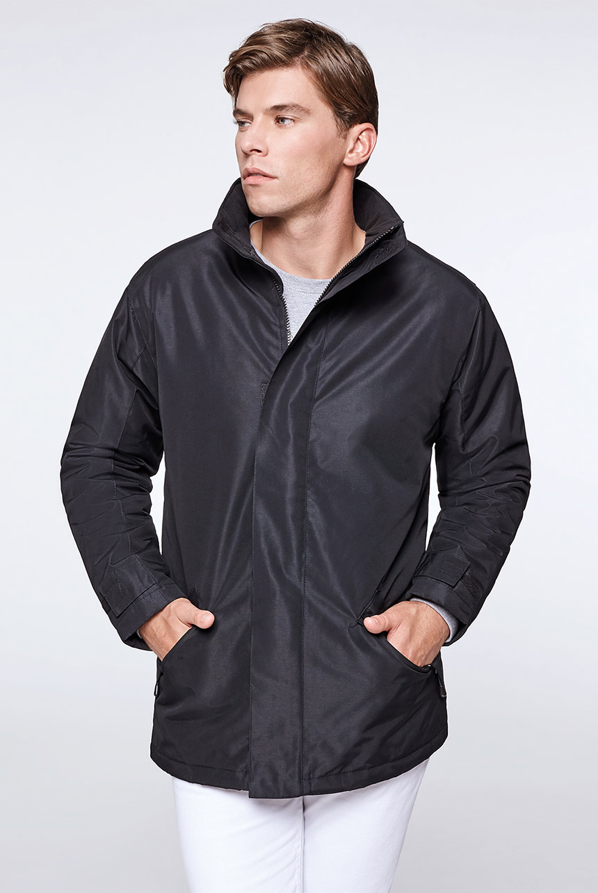 Стилно зимно мъжко яке. Два външни джоба с цип, капак и удобен накрайник за отваряне и затваряне. Два вътрешни джоба с велкро затваряне. Регулируеми маншети с велкро и прибираща се регулируема качулка. Лесен достъп за печат или бродерия чрез скрити ципове. От вън е покрито с 100% ветро и водоустойчиво полиестерно покритие.