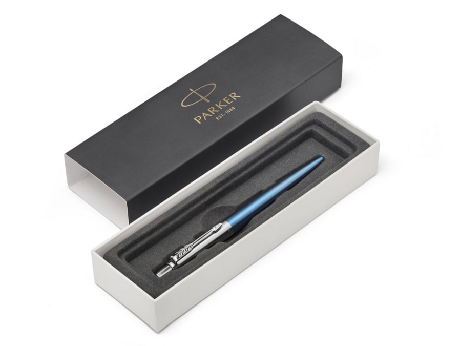 Модернизираната емблематична серия Jotter Royal на Parker е идеалната комбинация от класически стил и функционалност. Тялото е метално със светло синьо покритие и стоманена повърхност.