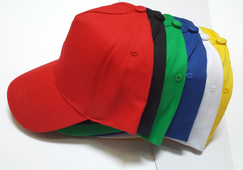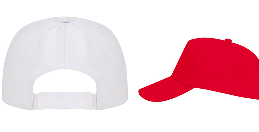 Промоционална пет панелна шапка с два бродирани вентилационни отвора и четири машинни шева на на козирката. Отвътре подгъв от сатенена лента и велкро закопчаване.