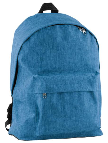 Раница с едно отделение, малък външен джоб с цип, подсилен гръб и дръжки.