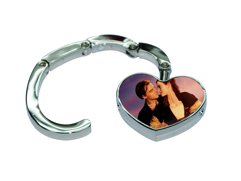 Метална закачалка за чанти. За сублимация с лек брокатен ефект на печата.