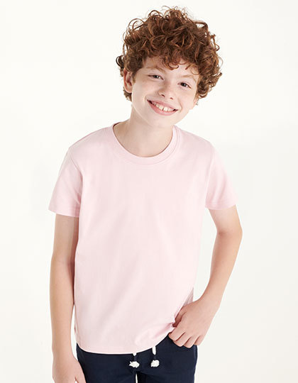 Детска елегантна безшевна тениска с къс ръкав нов модел 2022г. Тениска с тънко деколте съдържащо ликра за по - добра здравина при обличане. Памука е плътен 190гр/м2 и е изпран ензимно, което дава на тениската по - добра плътност и изключителна мекота при докосване.