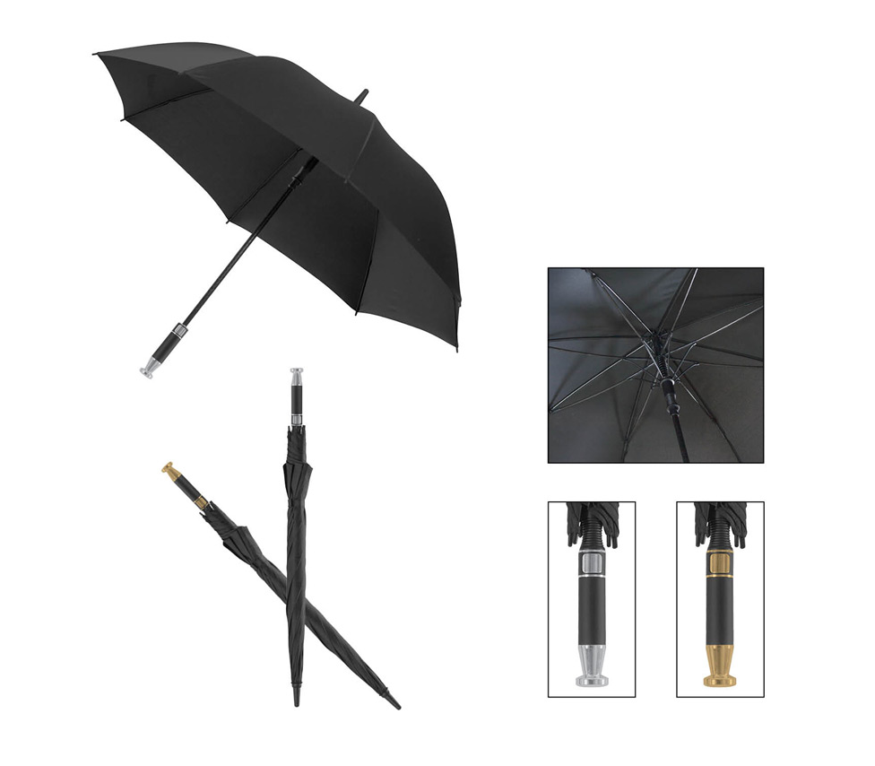 Aвтоматичен чадър, 8 панелен, конструкция от фибростъкло и метал, пластмасова дръжка.