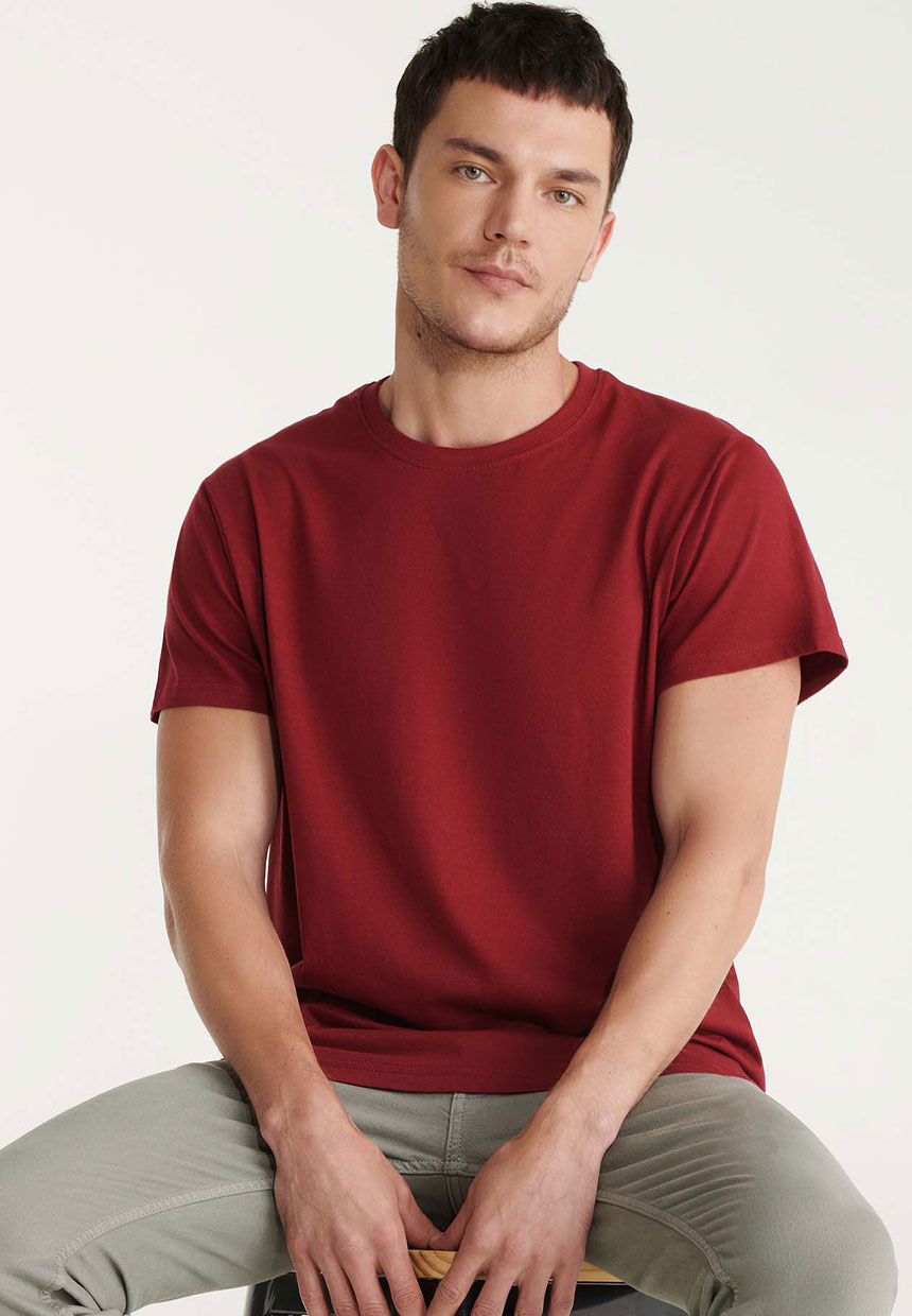 Мъжка памучна безшевна тениска с къс ръкав. Деколтето е с двоен шев и ликра за здравина и еластчиност.