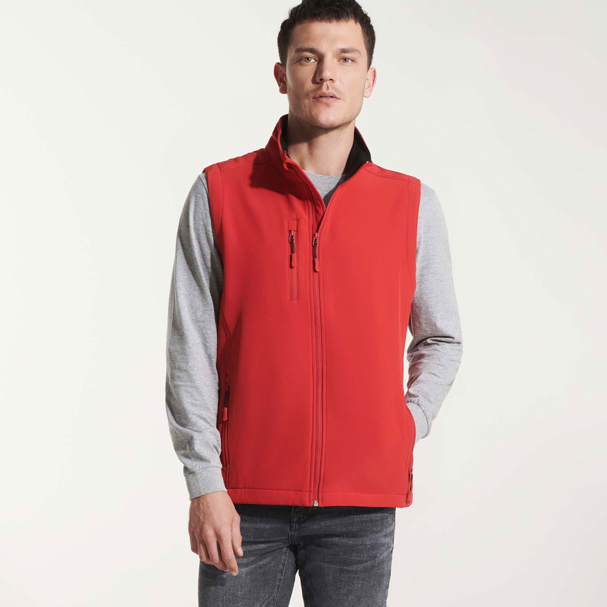 Мъжко яке без ръкав от специален "SoftShell" материал, състоящ се от два слоя. Якето е с цял цип, който завършва с протектор на брадата. Подсилени парчета на гърдите. Три джоба със специални водоустойчиви ципове. Третият джоб е отдясно, за да може якето да се брандира на сърцето. Якето е с висока водо и ветроустойчивост.