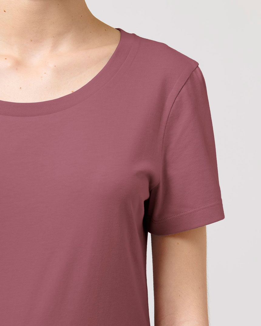 Дамска вталена елегантна тениска, обло деколте и къси ръкави. Свободната кройка и мекотата на памука ви осигуряват свобода на движение. Изключително мека и удобна тениска от 100% сертифициран чист органичен памук, чието производство не замърсява околната среда. Деколтето е по - прибрано и плътно, а ръкавите и края на тениската имат двоен шев.
