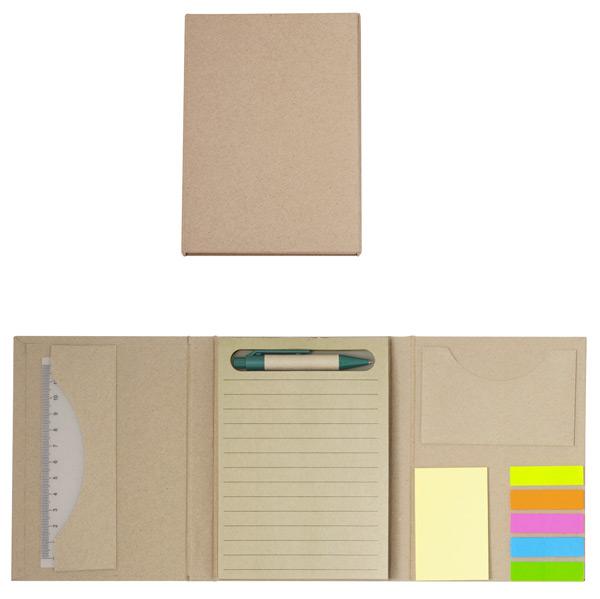 Еко тефтер с еко химикалка, 70 листа с редове, цвят на хартията бял, самозалепващи листчета.