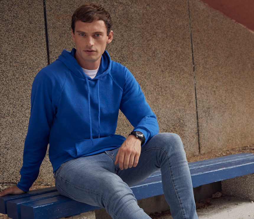 Мъжки ватен суитчър от олекотена вата с качулка и реглан ръкави, с преден джоб и връзка на качулката в същия цвят, с ластик на ръкавите и кръста. Суичъра е от приятна тънка памучна вата. Много подходяща за носене в помещение или в по-меко време навън. Удобен за работа и спорт.