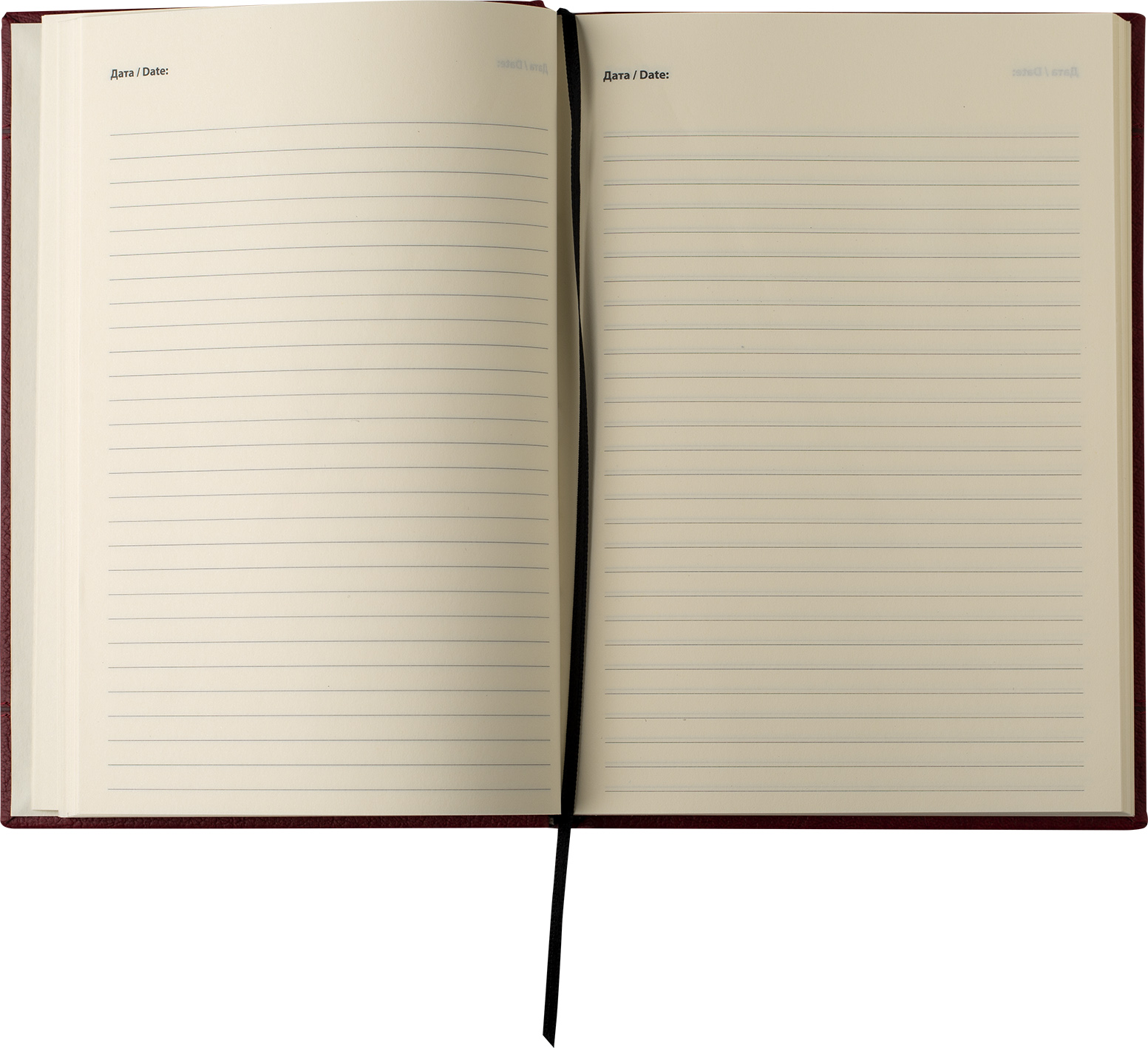 Корица: термоактивна кожа, концево шит и лепен, лице с мека вложка, обшит. Тяло: хартия жълт офсет - 240 стр., 13 стр. полезна информация, текстилна лента за отбелязване.