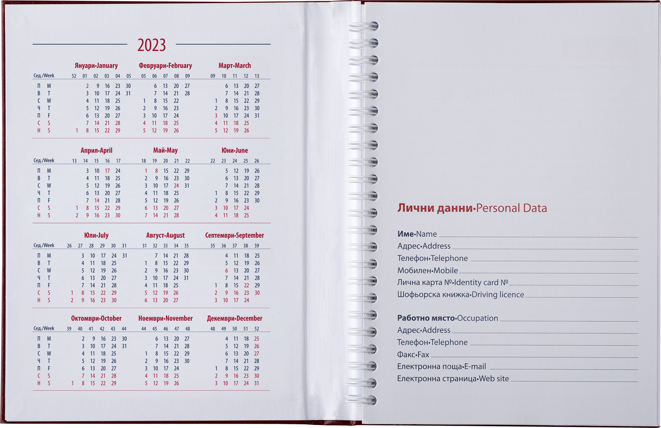 Корица: Твърда корица, подвързана със спирала.
