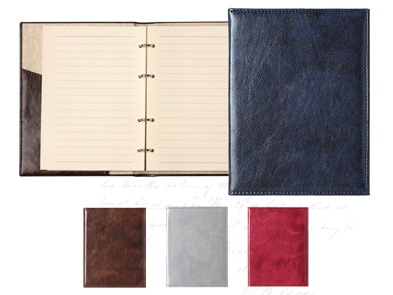 Корица: Луксозна корица от термоактивна кожа, концево шит и лепен, обшит, лице и гръб с мека вложка. Тяло: хартия жълт офсет, 200 стр., без дати, ринг механизъм с един джоб.