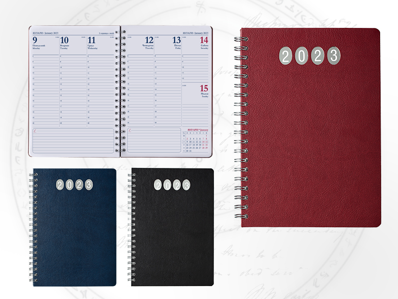Корица: Твърда корица облечена с термоактивна кожа, с прорези. Размер: 19 х 27 см Тяло: 144 стр., двуцветен печат, титул с топъл печат сребро, 16 стр. полезна информация, азбучник, закръглени ъгли, черен форзац.