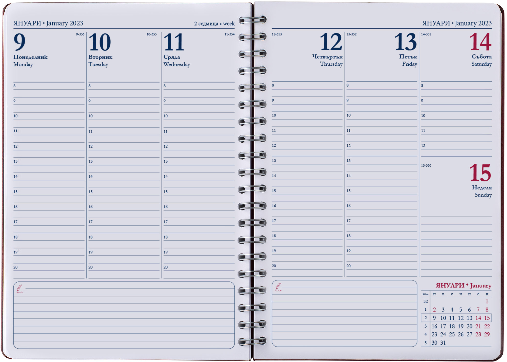 Корица: Твърда корица облечена с термоактивна кожа, с прорези. Размер: 19 х 27 см Тяло: 144 стр., двуцветен печат, титул с топъл печат сребро, 16 стр. полезна информация, азбучник, закръглени ъгли, черен форзац.