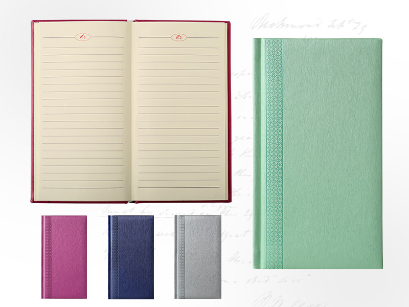 Корица: Луксозна корица облечена с термоактивна кожа със сухо преге, концево шит и лепен, лице и гръб с мека вложка. Размер:9.5 х 17.5 см Тяло: хартия жълт офсет - 96 стр., двуцветен печат.
