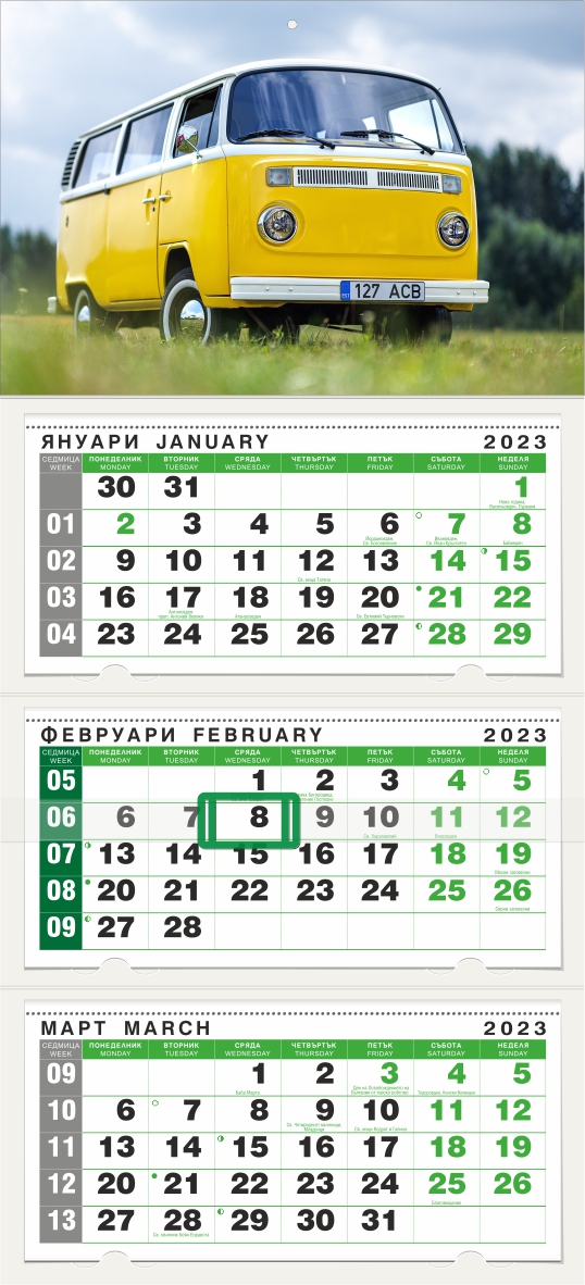 Тетрадка: комплект от 3 секции, офсет 70 г, печат в 2 цвята, с порфорация и бандерол, български и английски език.