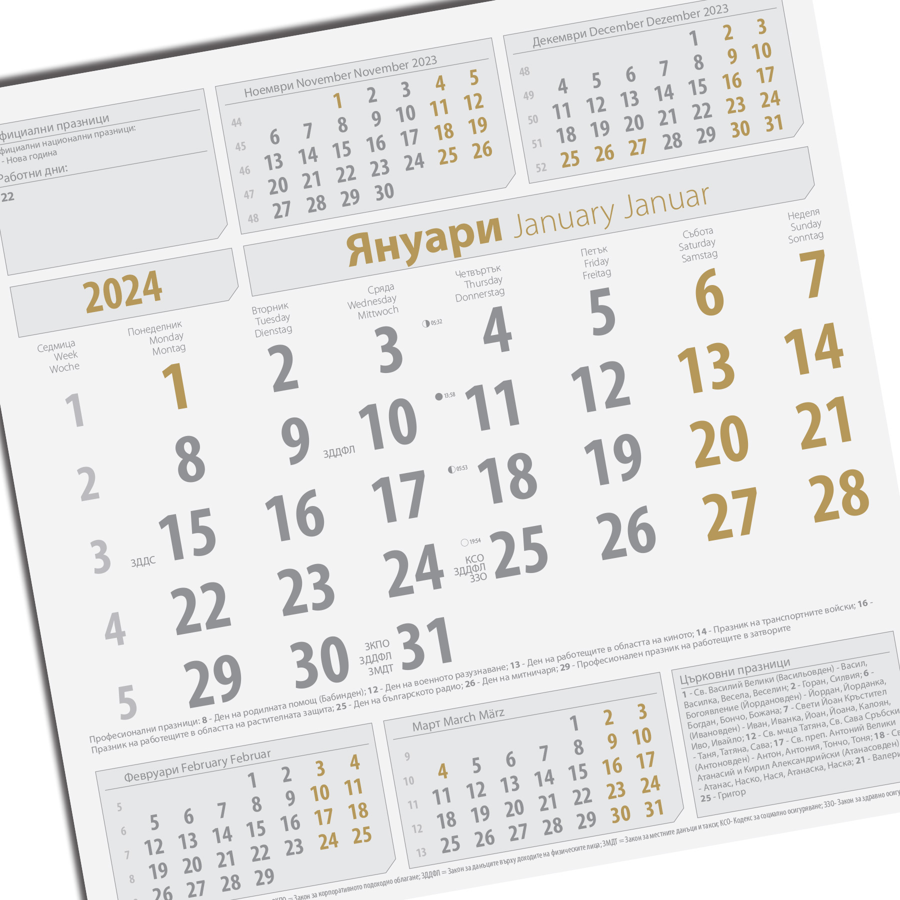 Еднолистовите рекламни бизнес-счетоводни календари, съдържат счетоводна, данъчна и бизнес информация, както следва: