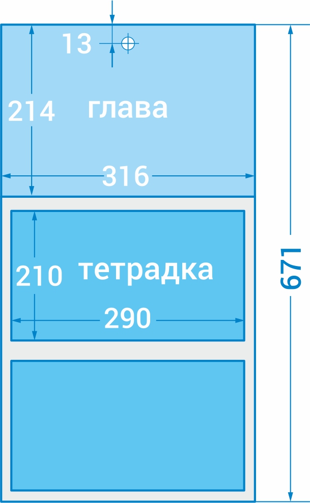 Основа: Едностранно хромов картон 280 г, щанцована, с „уши“ за придържане на листите на тетрадките към основата, биги за сгъване.