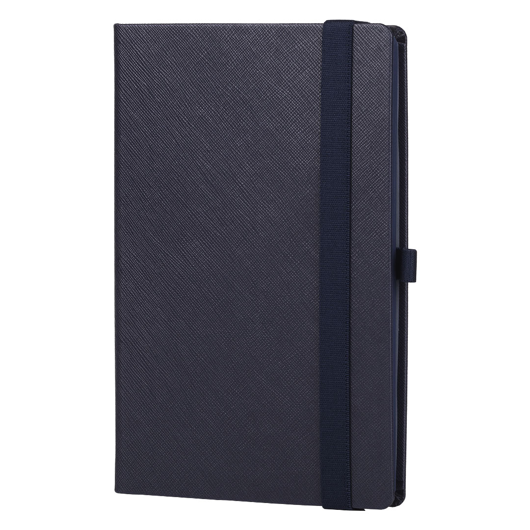 Бележник A5 със заоблени ъгли, ластик, ластик за химикалка и джоб от вътрешната страна на корицата.