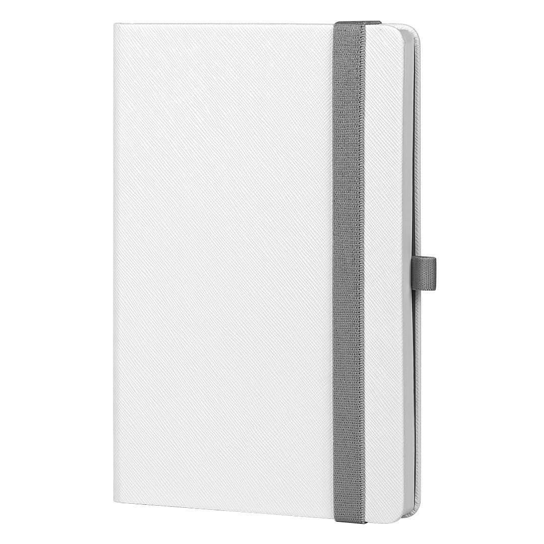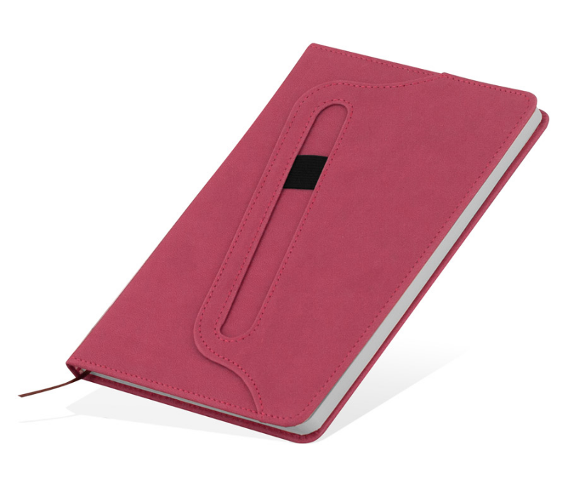 Бележник A5 със заоблени ъгли, ластик, ластик за химикалка и джоб от вътрешната страна на корицата.