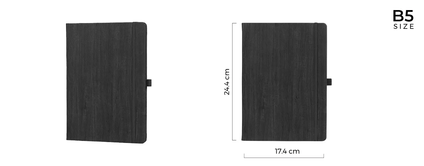 Бележник B5 със заоблени ъгли, ластик и ластик за химикалка.