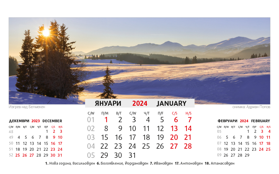 Настолен календар - пирамидка, 13 листа хром-гланц - 115 гр/м2