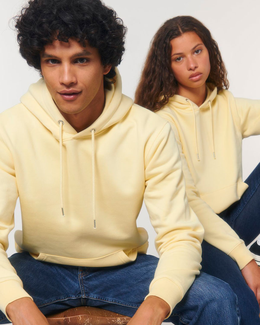Унисекс суитчър тип-кенгуру от плътна, мека и гладка памучна вата. Суитчъра е плътен (350гр.м2) и е от фин органичен пениран памук примесен с 15% полиестер за издържливост при пране. Всички шевове са подсилени и двойни. Тъй като е унисекс има перфектен дизайн - осигуряващ изключителен комфорт и безупречна визия. Един артикул на Stanley & Stella с безкомпромисно високо качество и устойчивост , изцяло от екологично чисти материали.