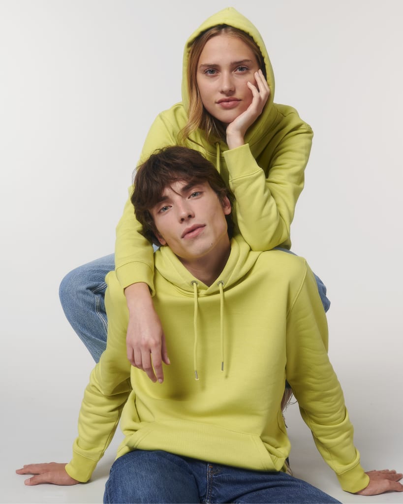 Унисекс суитчър тип-кенгуру от плътна, мека и гладка памучна вата. Суитчъра е плътен (350гр.м2) и е от фин органичен пениран памук примесен с 15% полиестер за издържливост при пране. Всички шевове са подсилени и двойни. Тъй като е унисекс има перфектен дизайн - осигуряващ изключителен комфорт и безупречна визия. Един артикул на Stanley & Stella с безкомпромисно високо качество и устойчивост , изцяло от екологично чисти материали.