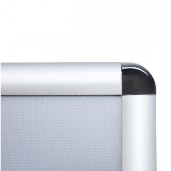 Можете лесно да смените изображението с едно движение. Стилен дизайн и лесна употреба. Дебелината е 25 мм, а рамката е изработена от анодизиран алуминий. Поглъща отблясъците и осигурява ясен образ с помощта на PVC покритие. Предимства: Rondo ъглови връзки Отварящи се пружинни елементи от неръждаема стомана UV защита за рекламното поле Лесна инсталация, позволяваща хоризонтален и вертикален монтаж Опаковката включва всички необходими елементи за сглобка и монтаж Детайли: Широчина алуминиев профил: 25 мм Рекламно поле: 35х50 см Гръб: 1.3 мм полистирен Лице: 0.40 мм прозрачно PVC с UV филтър.