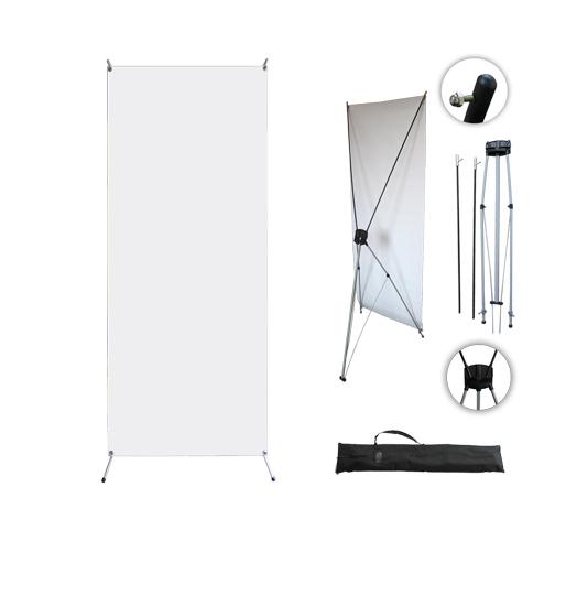Банер с високо качество, който може да бъде пренасян лесно. Необходимо е поставянето на 4 капси в четирите края на изображението, за да може то да бъде изпънато. Може да се транспортира лесно и няма необходимост от инструменти за сглобяване. Изгражда се за няколко минути. Комплектът съдържа: - X-Банер - Калъф за пренасяне Детайли: Разпънати размери: Широчина = 60 см / Височина = 160 см Видима част: Широчина = 60 см / Височина = 160 см Материал: Дигитално печатан винил Системата от опъващи елементи на „хикс“ гарантира перфектно опъване на винила.