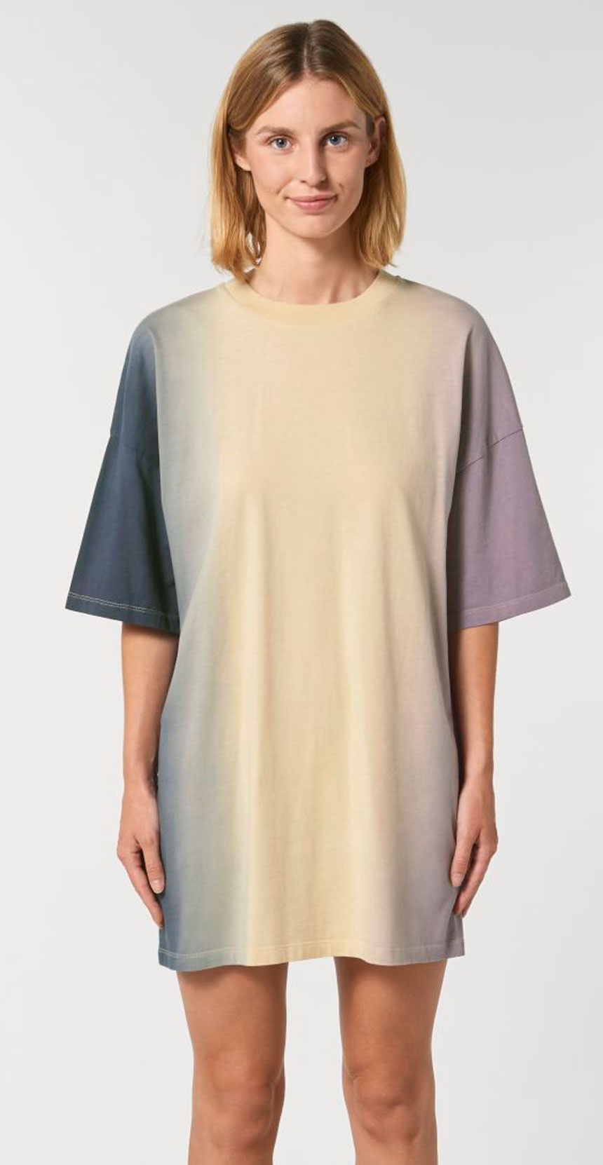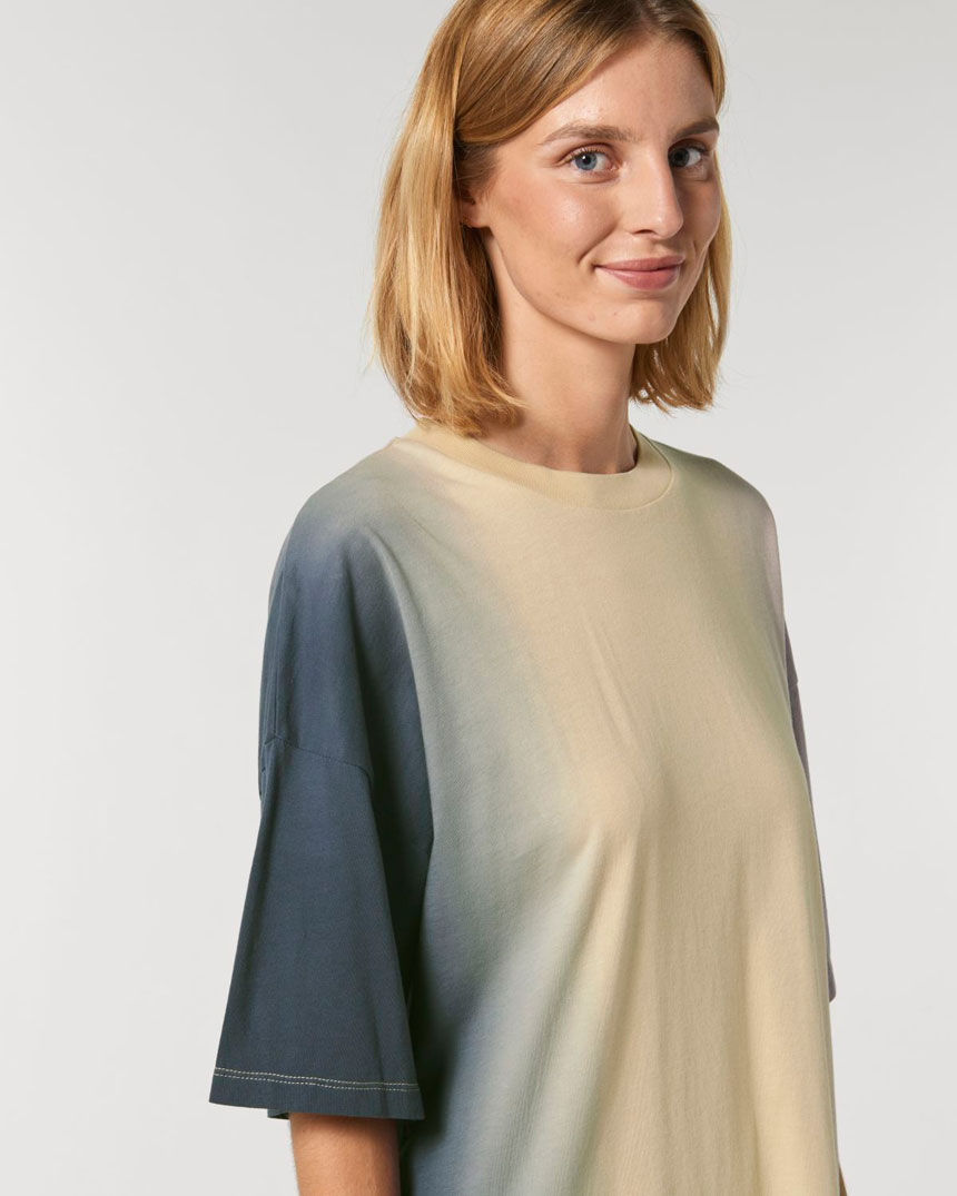 Уникалната унисекс тениска - рокля, избагрена с Tie- dye техниката за ръчно боядисване. . Всяка рокля е с уникална шарка и излъчване.