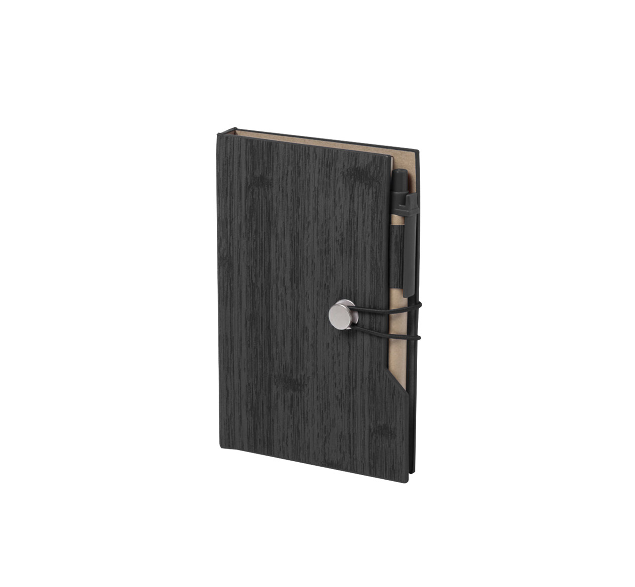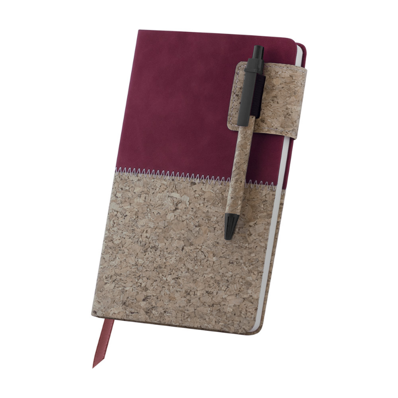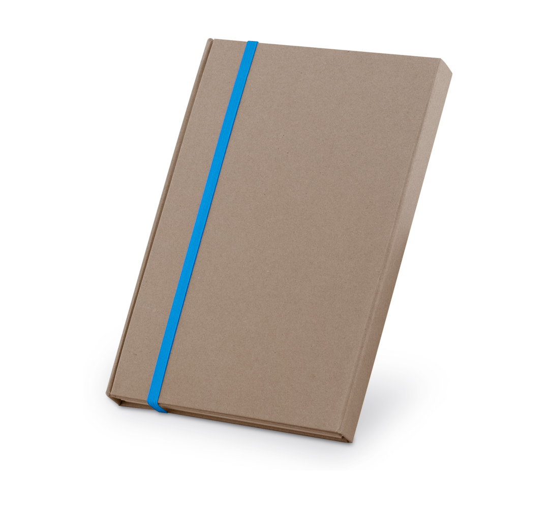 Еко бележник с листа на редове и ластик, с химикалка в същия цвят.