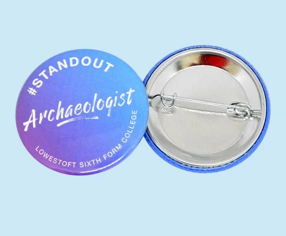 Най-поръчваните кръгли рекламни значки тип копче с игла за закачане в размери с диаметър от 25 до 56mm