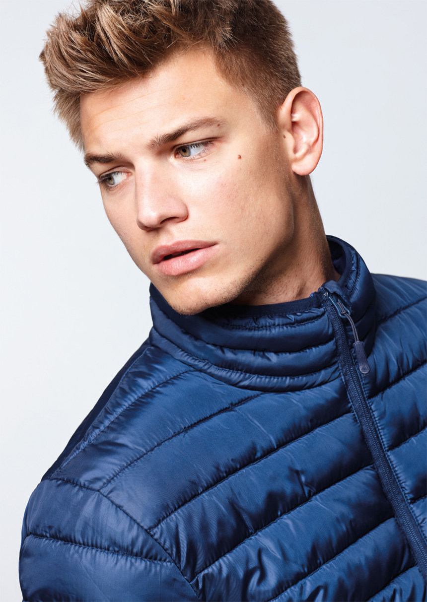 Мъжко водо и ветроустойчиво леко Padded яке с цял цип, с пълнеж, комбинация от шушляк, полиестер и микрофибърна вата. Якето е с контрастна подплата и ципове в същия цвят отпред и на джобовете. Ръкавите, подгъва и маншетите са с ластични кантове за спиране на вятъра. Към якето е включена и чанта.