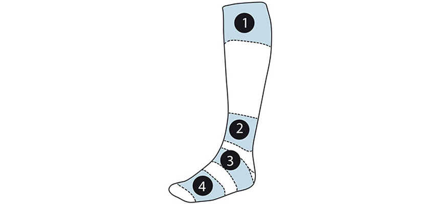 Футболни калци от полиестер и еластан. Стъпалото е от полиестер, който не задържа влагата, а я изважда отвън.