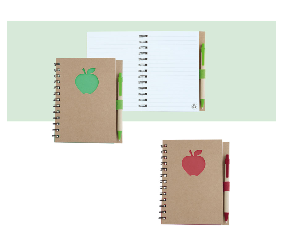 Еко тефтер с еко химикалка, 70 листа с редове, цвят на хартията бял.